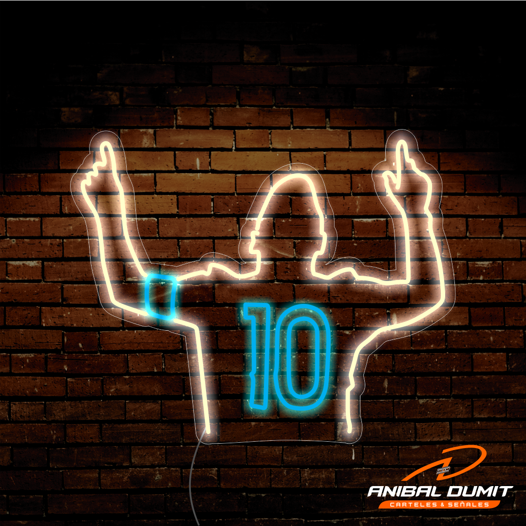 Cartel de Messi señalando al cielo